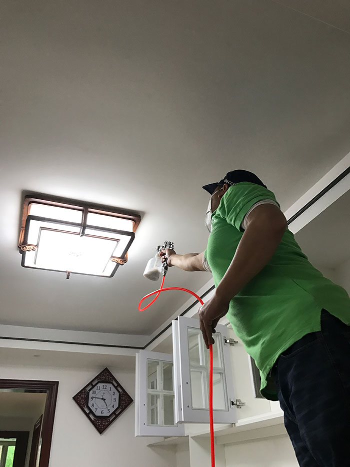 施工方法:整体空间喷涂,重点处理天花、墙面、地板、家具、汽车空间、座椅及空调。